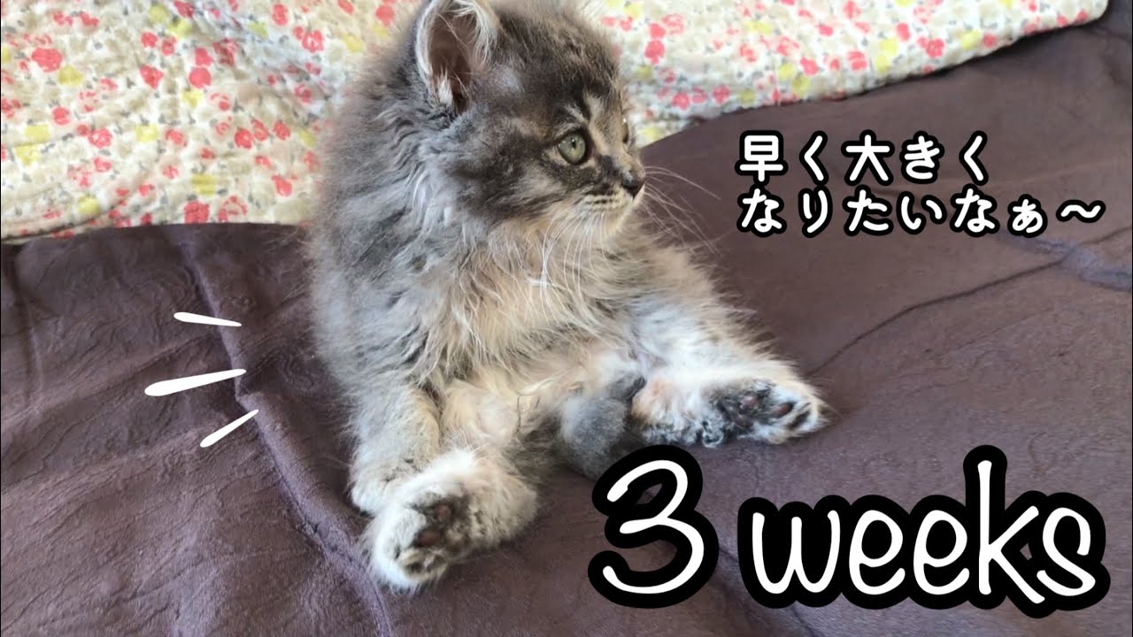 【保護して約3週間】子猫が人間みたいに座っていて可愛かった Cute kitten was sitting down like a human.