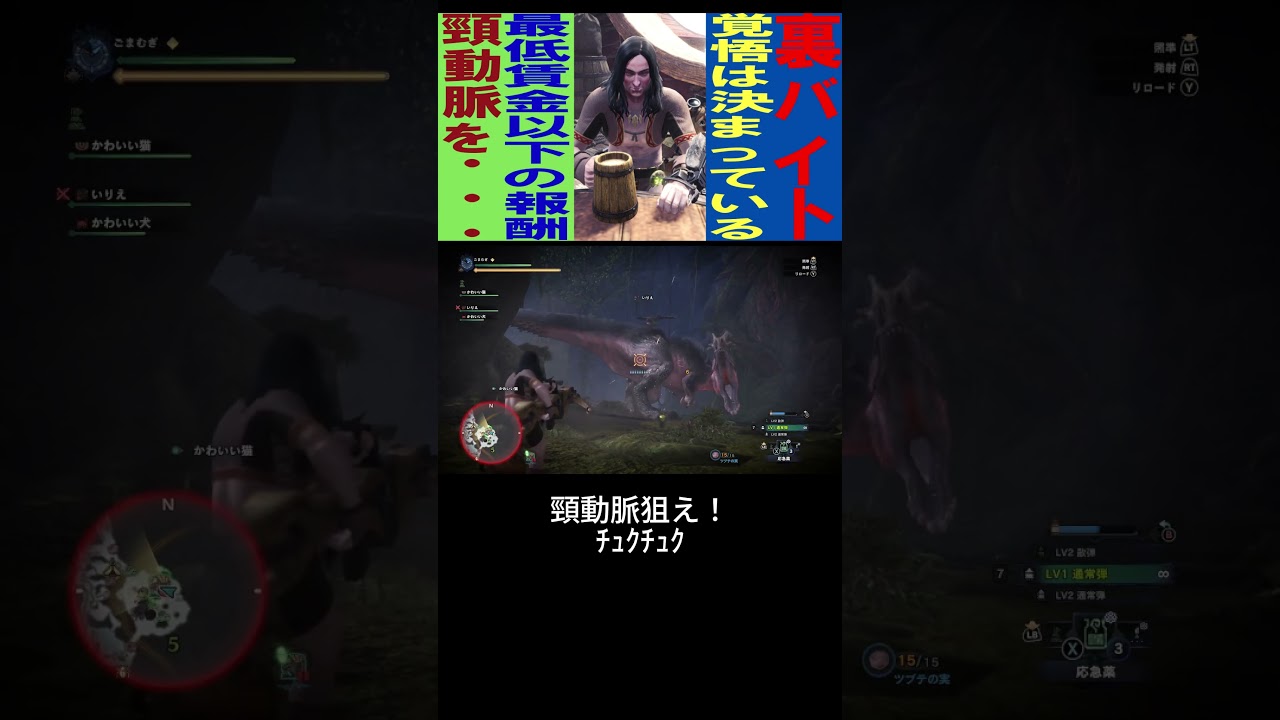 裏バイトで巨大生物を狩る/覚悟は決まっている/最低賃金以下の報酬/頸動脈を・・・/いりごま/shorts/18