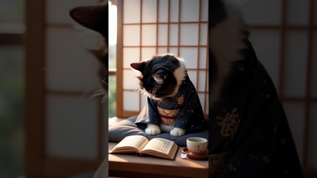 眠たい子猫の文豪 #AI動画 #子猫 #猫 #かわいい #ペット #ねこ好き #kitten #cat #catvideos #子ネコ #ねこ #kimono