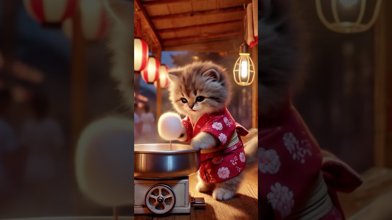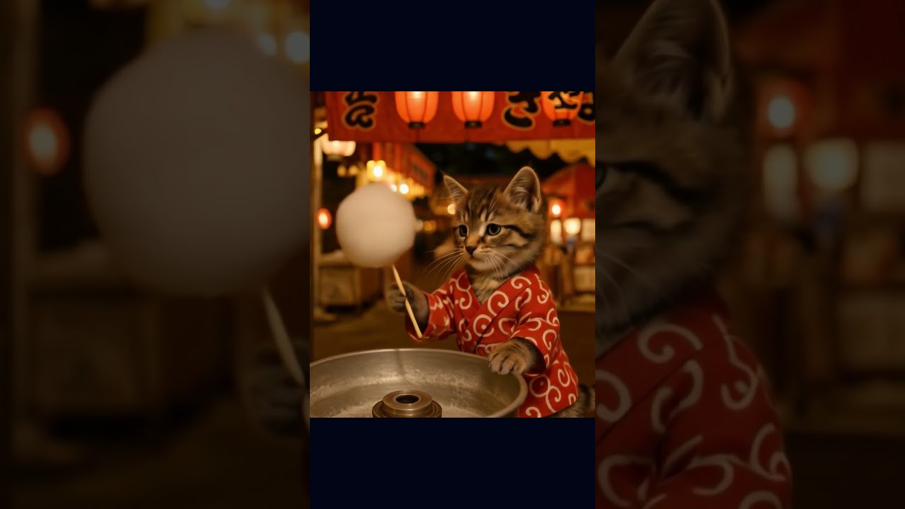 夏祭りの子猫の綿菓子屋 #ai #子猫 #猫 #かわいい #ねこ好き #夏祭り #kitten #cat #catvideo