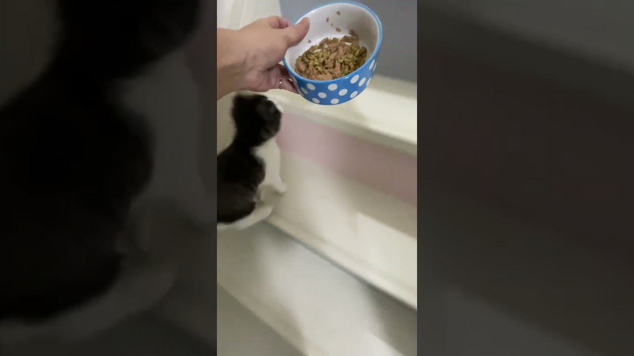 ごはんに一生懸命ついてくる子猫【猫のいる暮らし】#shorts