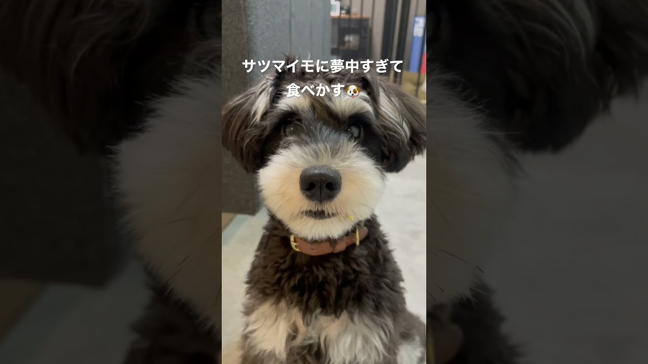【可愛い】サツマイモに夢中で食べかすつけたままのシュナウザー子犬
