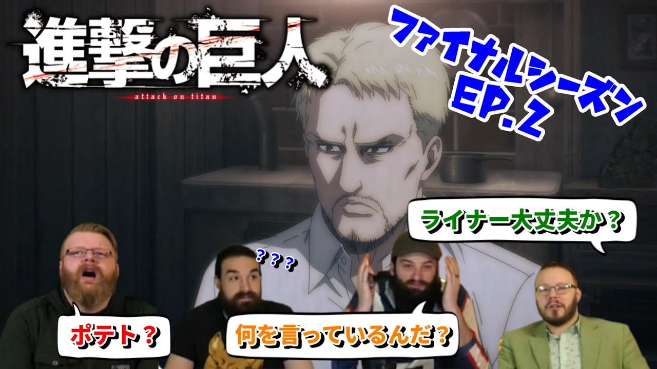 【海外の反応】進撃の巨人 ファイナルシーズン 2話 ライナーがおかしくなった?その真意を考察する4人です【日本語翻訳】