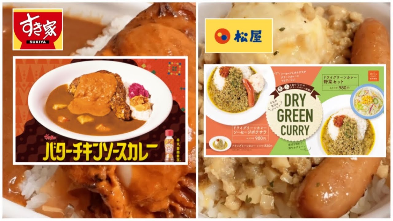 【牛丼屋の新作カレー】すき家・松屋「バターチキンソースカレー、ドライグリーンカレー」