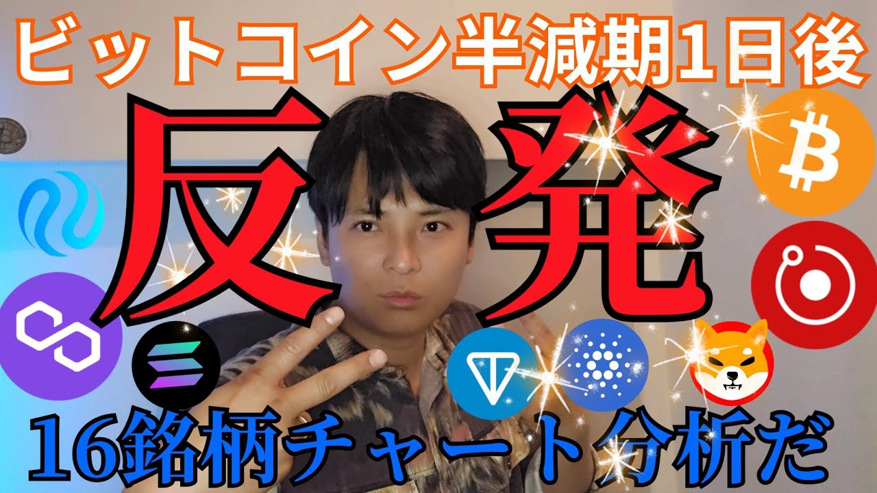 【ビットコイン半減期1日後】アルトコイン反発、仮想通貨16銘柄チャート分析だ!