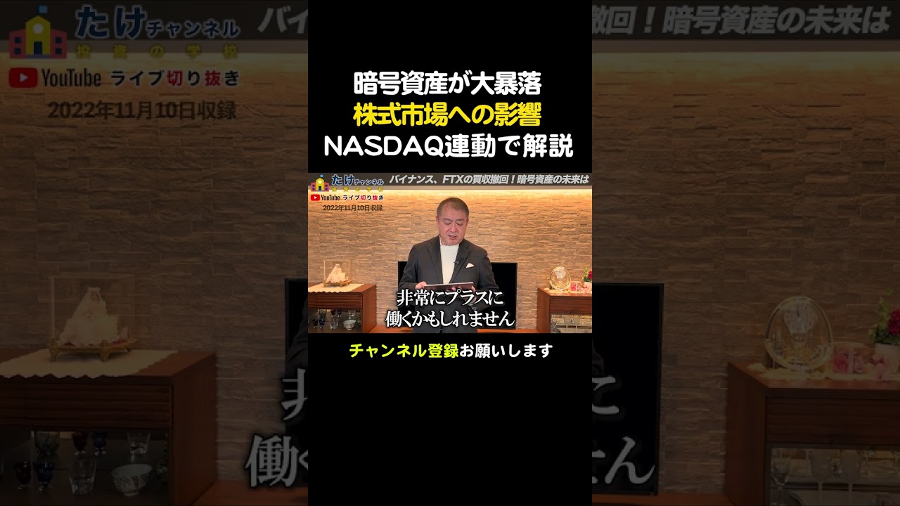 バイナンスがFTX買収を撤回!暗号資産暴落が株式市場に与える影響【仮想通貨/取引所/サムバンクマンフリード/チャンポンジャオ/武下明徳】#shorts