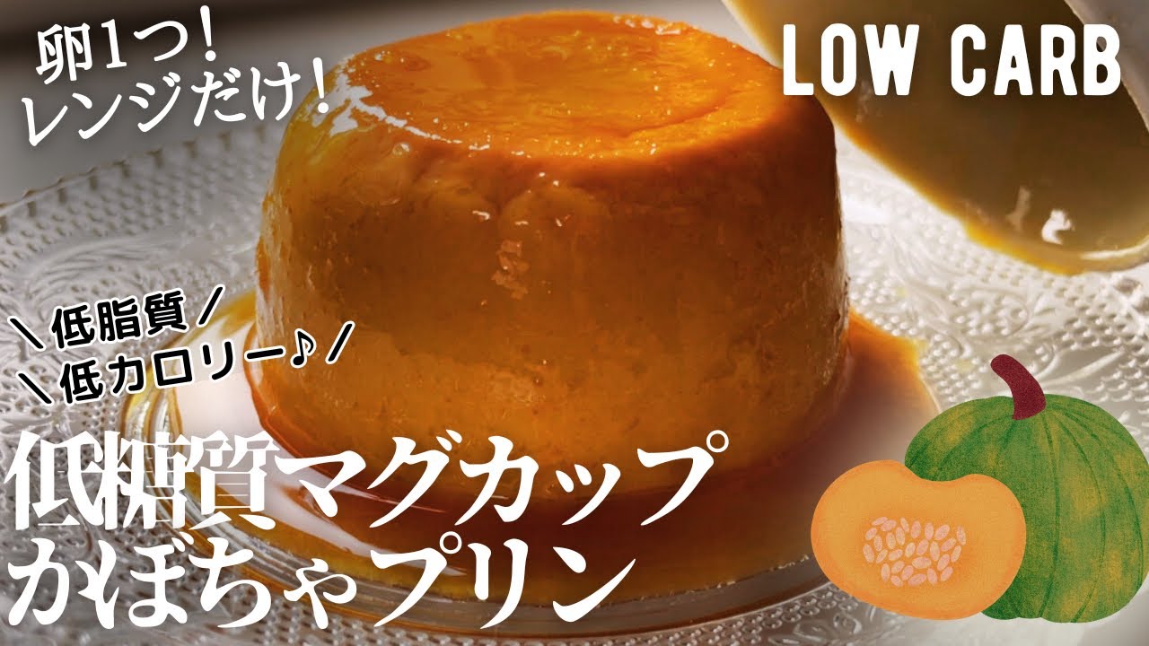【ダイエット】低糖質かぼちゃマグカッププリン作り方。卵1個!レンジだけ!失敗しない!low carb Pumpkin Mug pudding