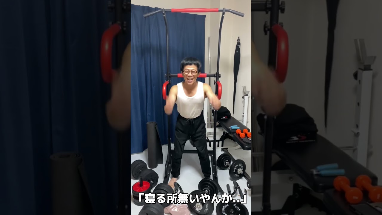 【144cmの先輩】筋トレ道具を置きすぎて寝るとこなくなるチビマッチョw【カマキリダンス/Waiting for Love】#shorts