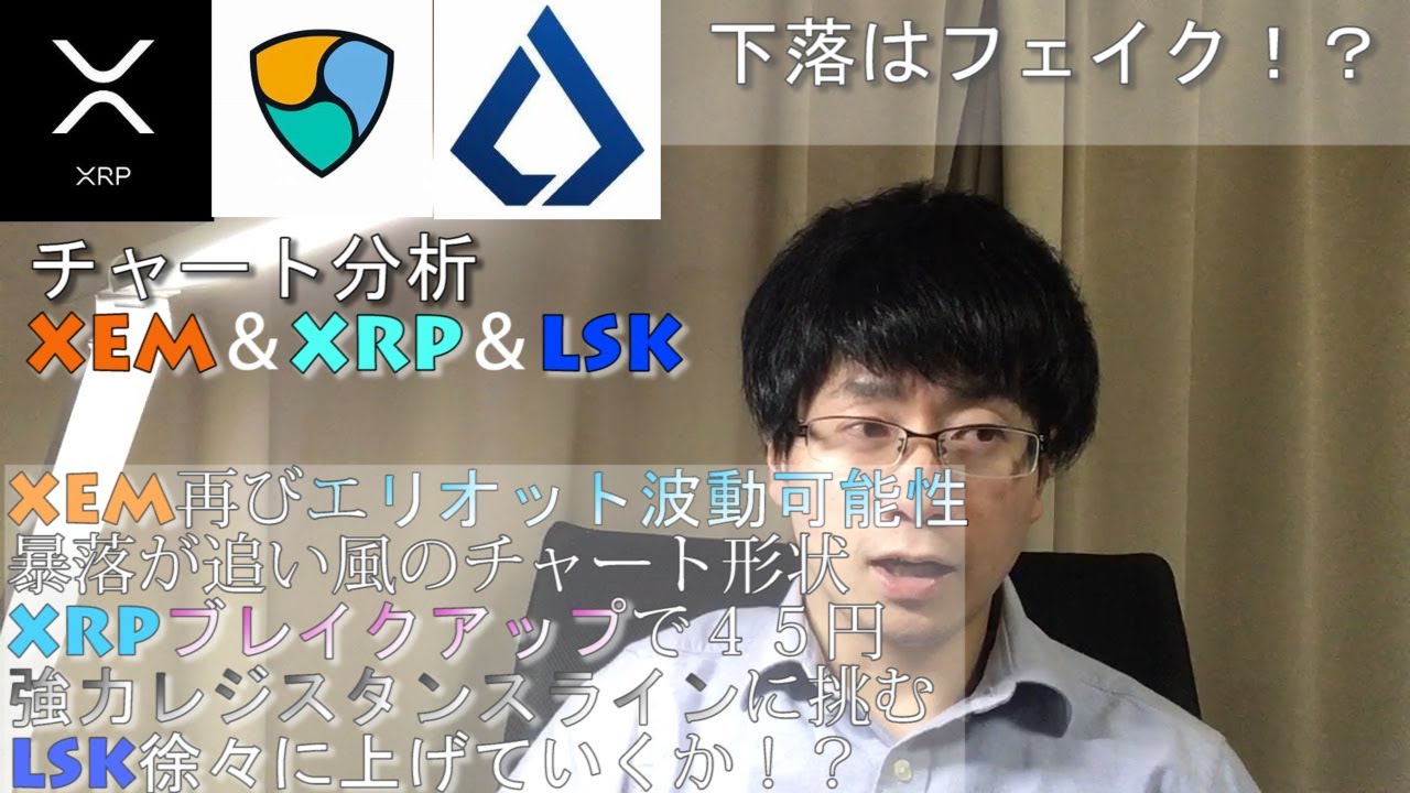 アルトコイン復活!XEM再びエリオット波動のチャート形状&XRPレジサポを起こし待ち構える超強力な45円抵抗ライン超えるか&LSK徐々に上げていく平和なチャート形状 チャート分析XEM&XRP&LSK