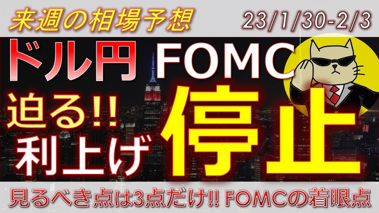 【ドル円最新予想】FOMCこの3点だけ見とけばOK!利上げ停止が迫る中、どう戦うか?簡単解説!来週の為替相場予想と投資戦略!ISM・消費者信頼感・共通担保オペにも注目! (23/1/30週)【FX】