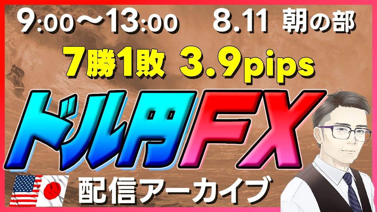 【FXライブアーカイブ】8月11日9時~13時_祝日でもそれなりに動く!ドル円トレードライブ配信(トレード毎にチャプターあります)