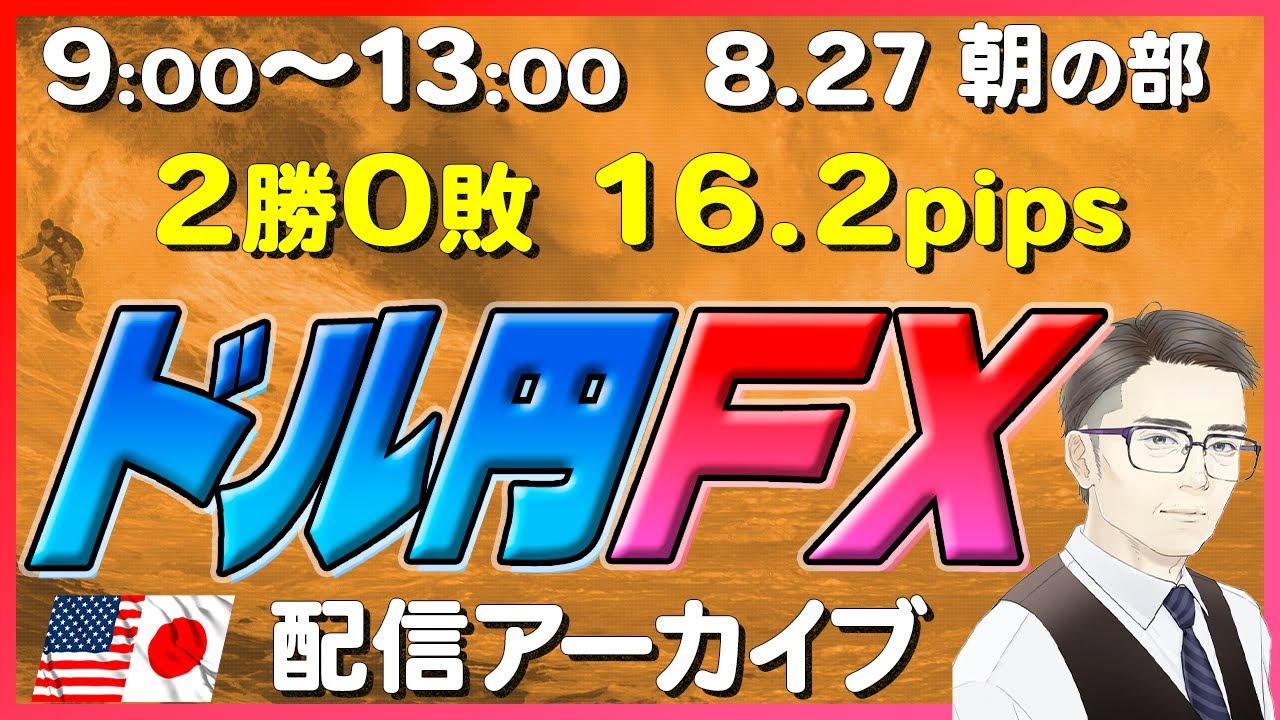 【FXライブアーカイブ】8月27日9時~13時_綺麗な上昇トレンドを描く!ドル円トレードライブ配信(トレード毎にチャプターあります)