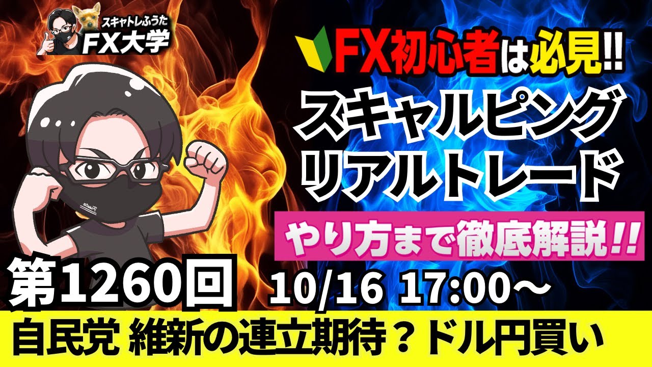 【FXライブ配信】リアルトレード解説、第1261回、米中貿易戦争が激化、ドル円軟調、高市トレード終了!自民・維新の連立政権は!?|デイトレ・スキャルピング|ドル円・ポンド円相場分析と予想