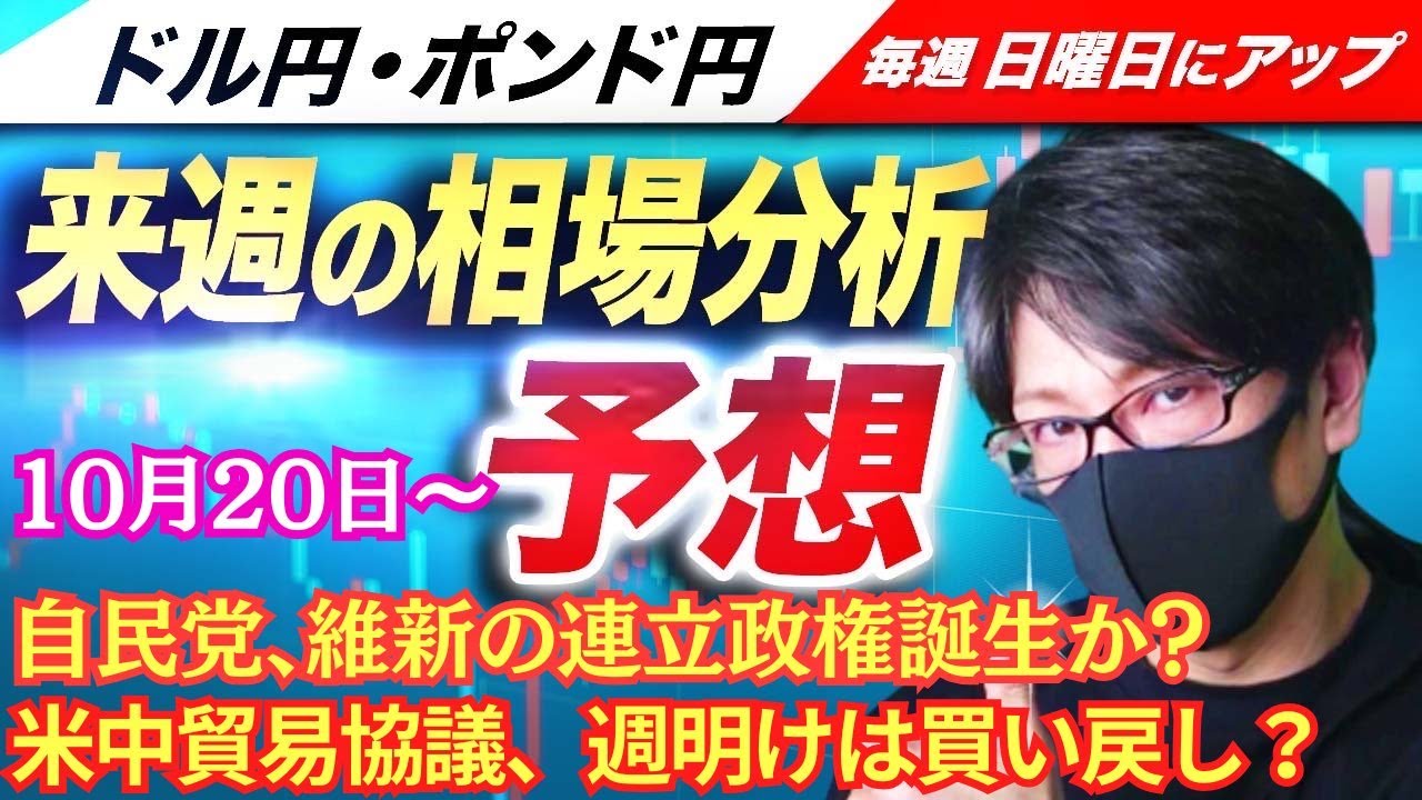 【FX来週の相場分析と予想】米中貿易協議、自民党、維新の連立政権誕生か?高市トレードの復活は?相場への影響!デイトレ・スキャルピング!ドル円・ポンド円、週間為替展望(10月20日~10月24日)