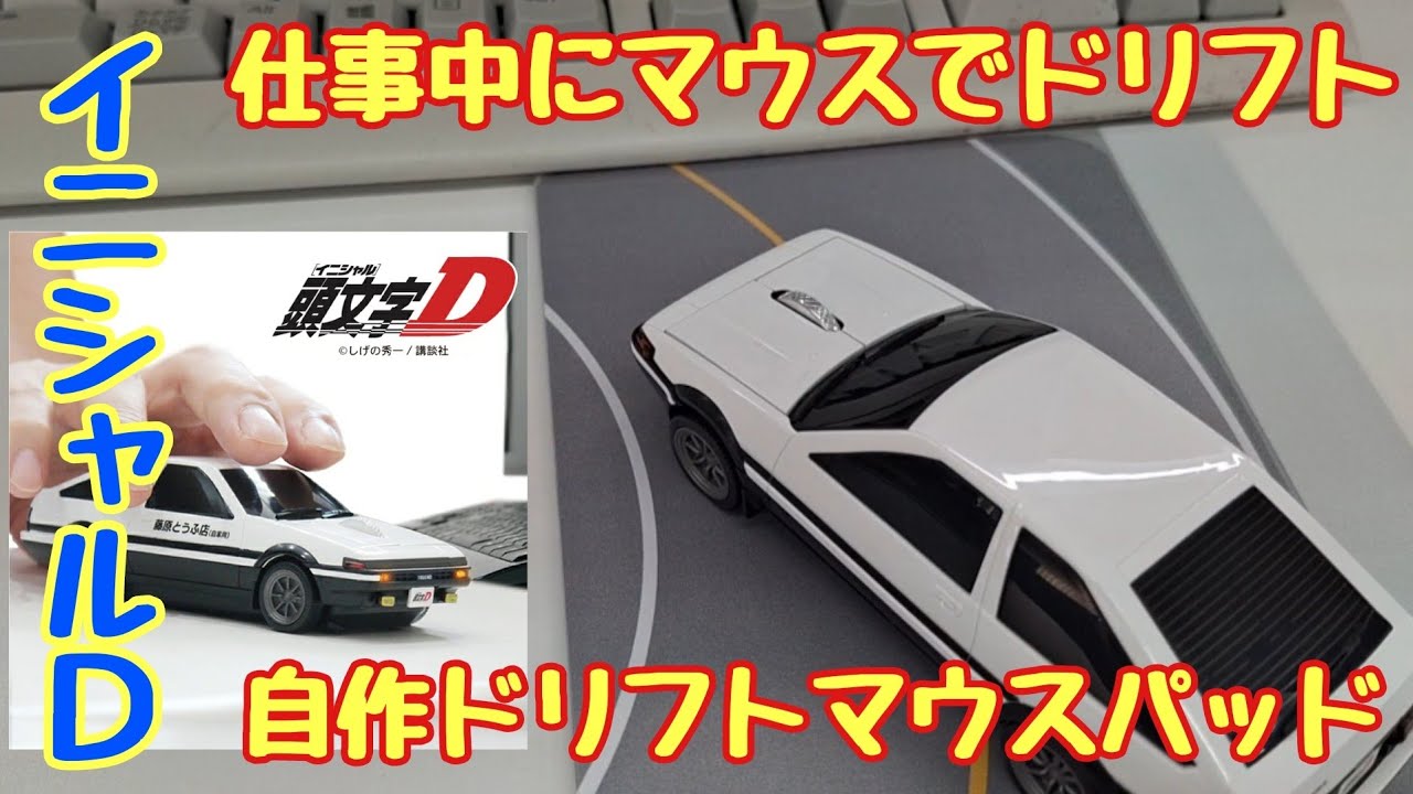 オフィスのデスクでドリフト、イニシャルDマウス、ドリフトマウスパッドも自作