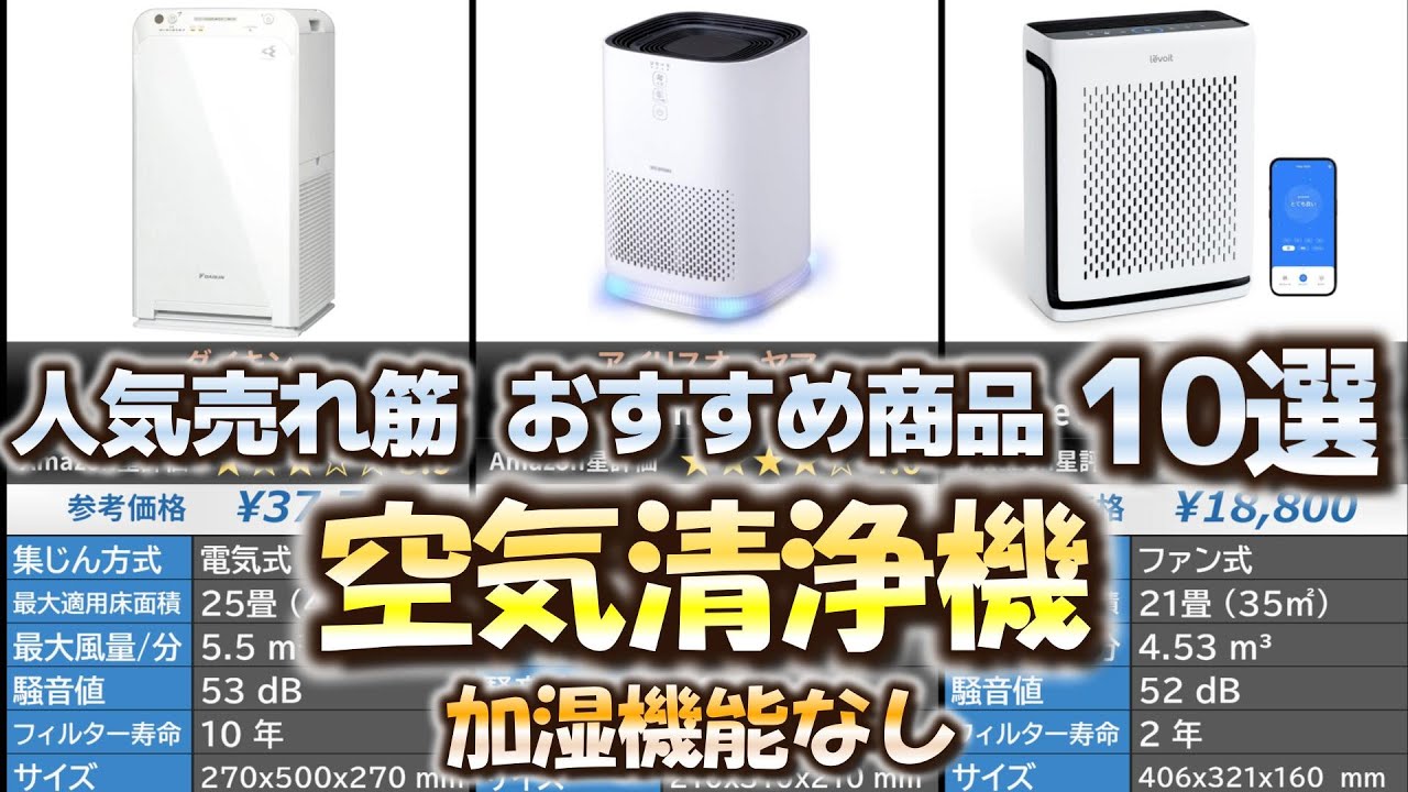 空気清浄機 (加湿なし) 人気売れ筋 おすすめ10選【2024年】
