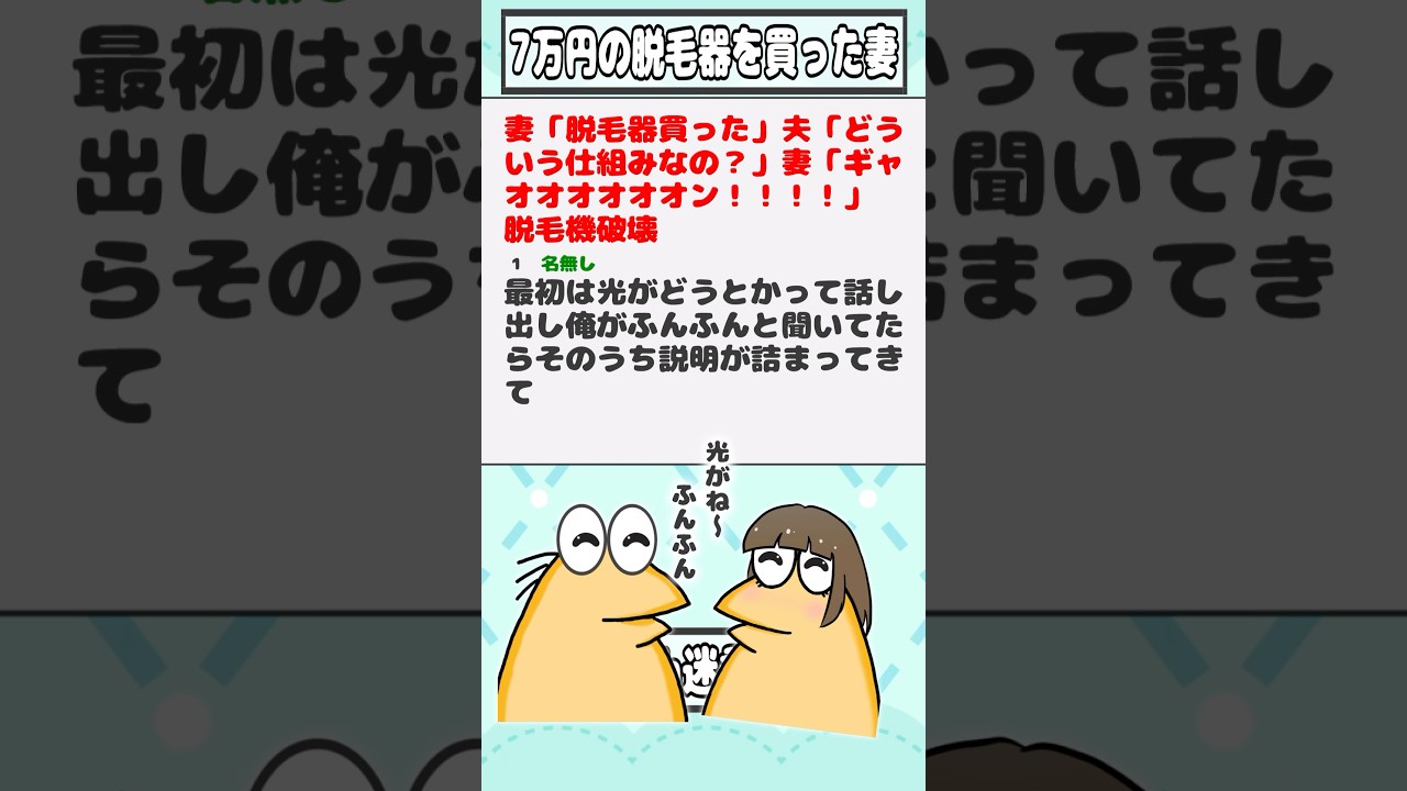 【2ch迷言集】妻「脱毛器買った」夫「どういう仕組みなの?」妻「ギャオオオオオオン!!!!」 脱毛機破壊【2ch面白いスレ】#shorts