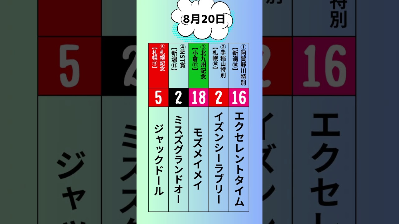 【競馬予想】8月20日(日)厳選勝負レース推奨馬大公開!血統とラップで徹底予想!#北九州記念 #札幌記念