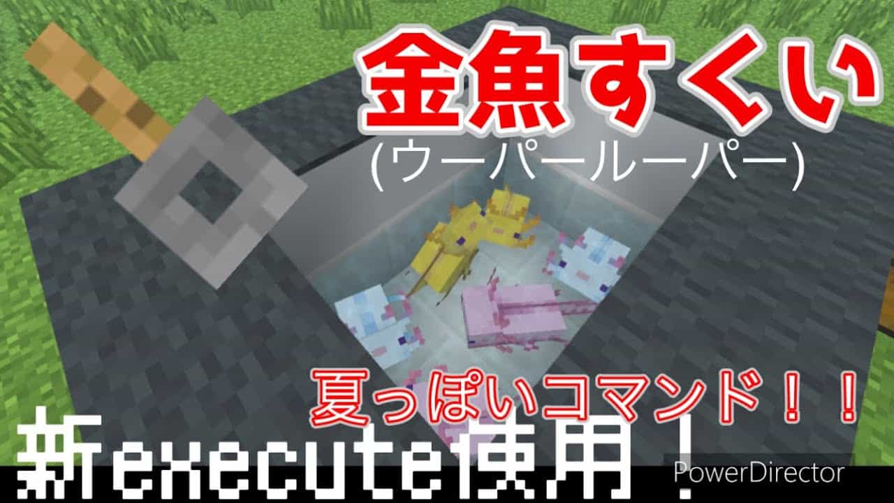 【マイクラBE統合版】新executeでウーパールーパーすくい(金魚すくい)の作り方!夏っぽいコマンド!