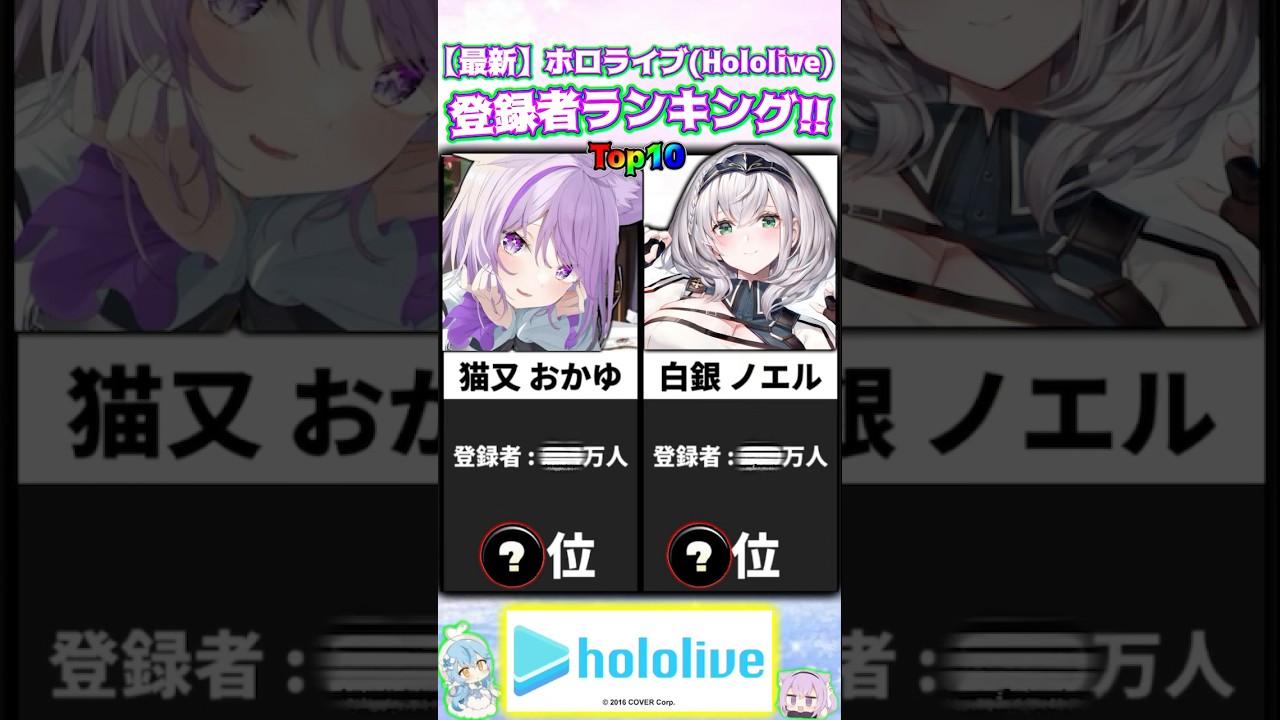【最新】ホロライブ登録者ランキングTop10!! #shorts #hololive #宝鐘マリン #白銀ノエル #さくらみこ #兎田ぺこら