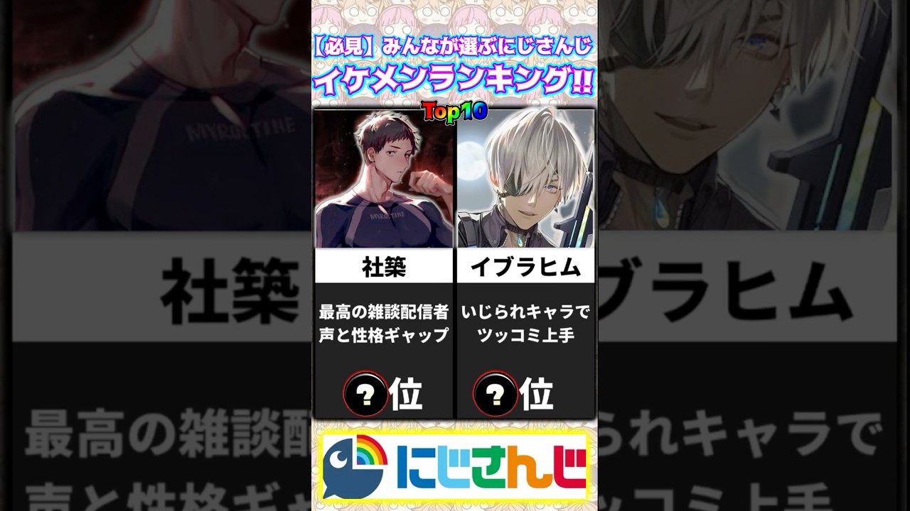 【必見】みんなが選ぶにじさんじイケメンランキングTop10!! #shorts #vtuber #イブラヒム #葛葉 #叶 #剣持刀也 #不破湊 #加賀美ハヤト
